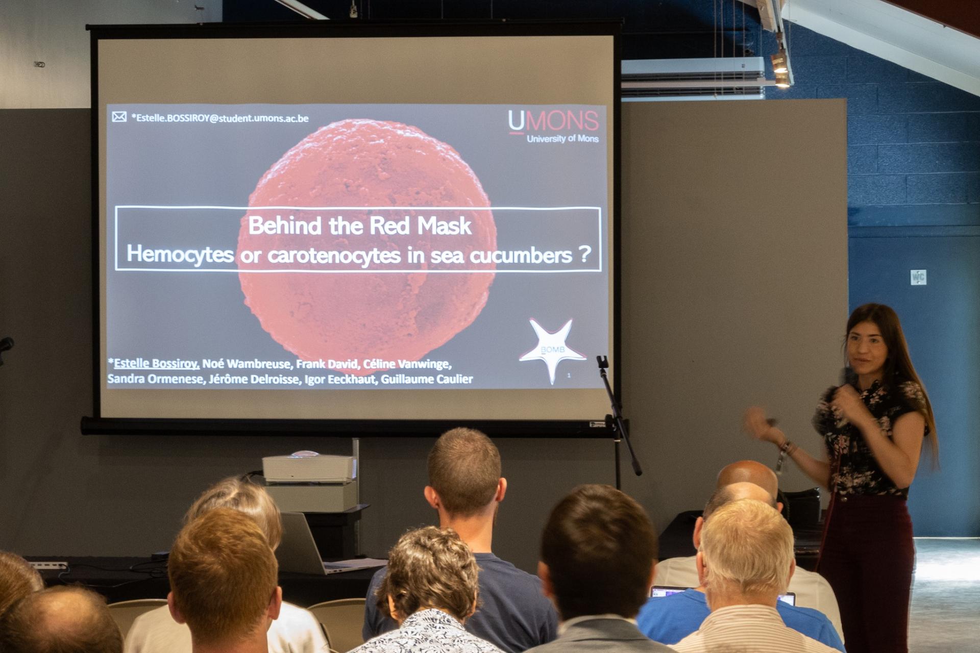 Les présentations étaient toutes plus fascinantes les unes que les autres, couvrant une vaste gamme de sujets, de la bioluminescence aux espèces de pycnogonides envahissantes en Mer du Nord, en passant par la résilience des coraux noirs de Madagascar face aux sédiments, l'exploration des profondeurs de Madagascar, la diversité des couleurs des poissons récifaux, le système immunitaire des concombres de mer, les coraux du Panama et même la production de colle par certains vers marins...